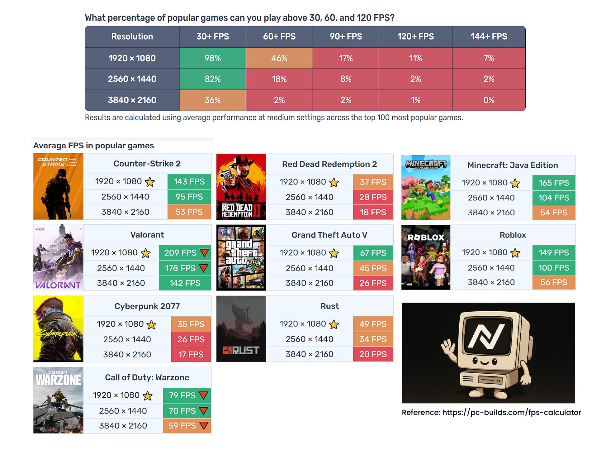 Performance: Awesome 1080p gaming performance! For optimal performance in a particular game, we recommend searching YouTube and Google for Radeon RX 580 along with the title of the game you're interested in. It should be capable of handling nearly any e-sports games at 100+ FPS.